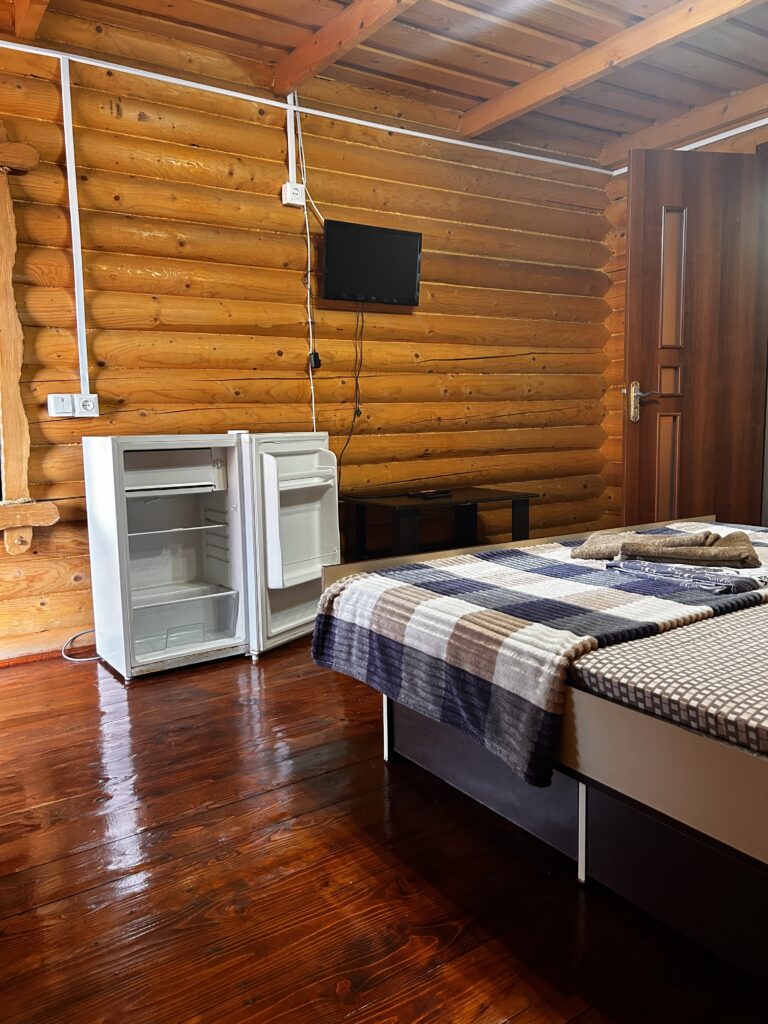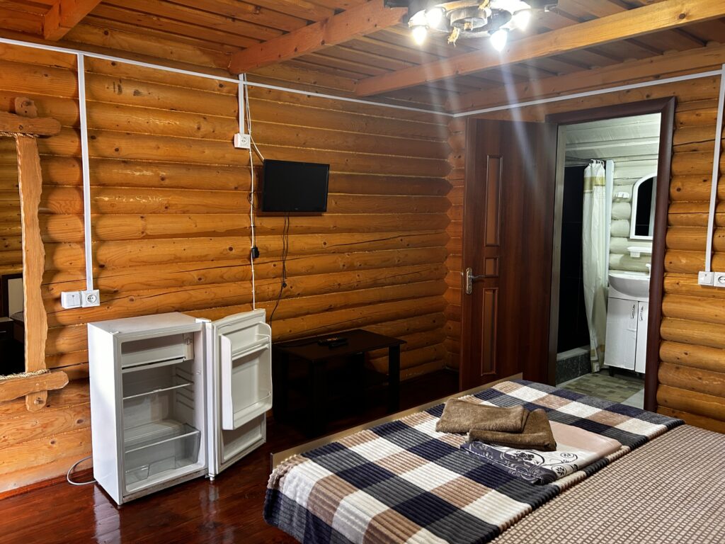 Чотири односпальні ліжка, плазмовий телевізор, холодильник, санвузол (туалет, умивальник, загальний на території).