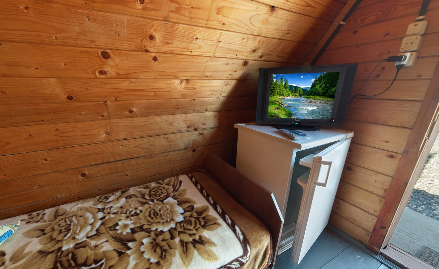 Чотири односпальні ліжка, плазмовий телевізор, холодильник, санвузол (туалет, умивальник, загальний на території).